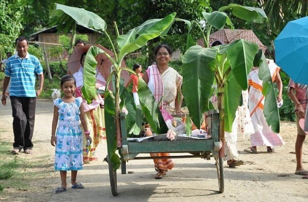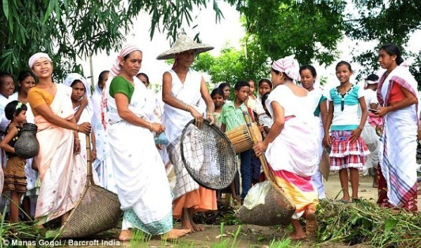 在婚禮上,主持婚禮的圣徒吟誦傳統(tǒng)的祈禱詞,婚禮結(jié)束后,青蛙會(huì)被帶到附近的小池塘放生。村民則繼續(xù)用餐,有超過900盤食物被供應(yīng)。參加儀式的村民Gogoi說:“我們放生青蛙,這樣它們可以過它們自己的生活,同時(shí)向雨神傳達(dá)我們的信息。舉行這樣的儀式是不得已的措施,我們感謝上帝能夠讓我們的愿望成真?!?/p>