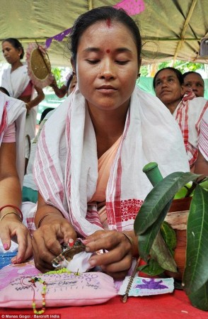儀式由抓住來自不同村莊的一雌一雄兩只青蛙開始。達(dá)斯說:“我們必須確保青蛙來自兩個(gè)不同的村莊,只有這樣,雨神才能接受我們的呼吁。等到青蛙準(zhǔn)備就緒了,整個(gè)婚禮的儀式就像我們?nèi)祟愖约旱幕槎Y儀式一樣?!?/font>