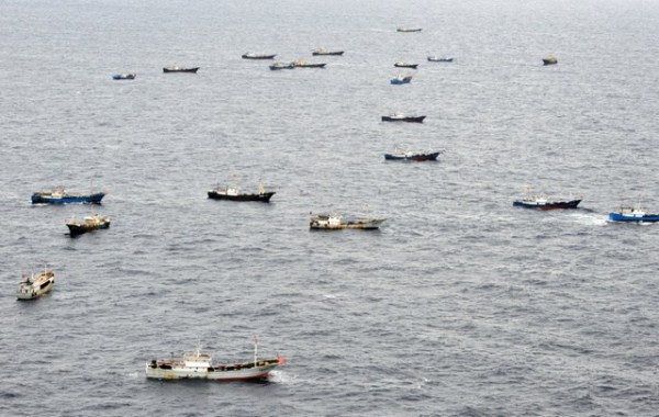 報道稱,這些漁民主要來自福建,一名倒賣珊瑚的男子表示:非法捕撈是撞大運的賭博。中國政府也管得嚴(yán),因此風(fēng)險極大。這名倒賣者稱當(dāng)?shù)貪O船從三四年前就開始去沖繩縣附近等海域非法捕撈珊瑚,這幾個月有七八十艘漁船從三沙鎮(zhèn)前往小笠原諸島附近等海域,寧德市總共有200多艘。圖為近日,日本海上保安廳攝到的小笠原群島周邊的中國漁船。