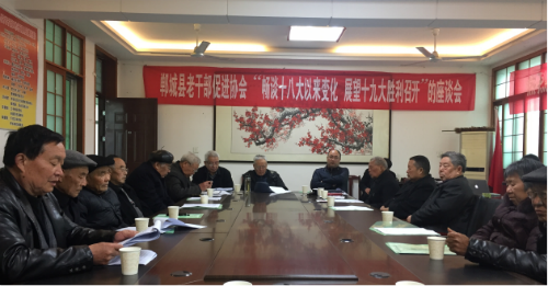 2017年,老干部促進協(xié)會決定通過采取座談訪談、調研建言、網評熱議、參觀考察、家風傳承、文藝創(chuàng)作、典型宣講、節(jié)慶活動等形式,在全市廣大離退休干部中開展“暢談十八大以來變化,展望十九大勝利召開”的活動,積極推進“不忘初心葆本色·中原出彩我點贊”活動。鄲城縣老同志們在思想政治建設、輿論宣傳領導、優(yōu)良傳統(tǒng)傳承、社會風氣凈化等方面積極發(fā)聲,積聚正能量、傳遞正能量,充分表達對堅持黨的領導和走中國特色社會主義道路的堅定信心,充分展示他們不忘革命初心、永葆政治本色的可貴品質,充分釋放他們對黨無限忠誠的深厚感情,積極為黨的事業(yè)發(fā)展點贊加油,為十九大勝利召開營造良好氛圍。