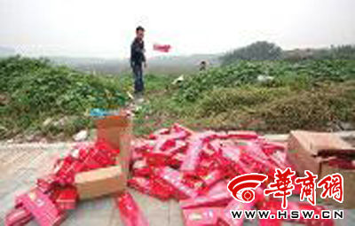 昨日下午,西安市雁翔路附近的一塊荒地里,上百條中華牌香煙和少量的蘇煙散落在草叢和垃圾堆里。這些香煙大多包裝完整,有防偽噴碼,看上去和市面上出售的商品一模一樣。有人說(shuō),這些高檔煙是前一天下午一輛面包車開(kāi)過(guò)來(lái)扔的。