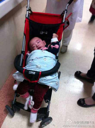 上海市中西醫(yī)結(jié)合醫(yī)院兒科主任沈朝斌介紹,從入院體檢來(lái)看,女?huà)氡憩F(xiàn)出生長(zhǎng)發(fā)育功能的障礙。女?huà)胍?6個(gè)月大,但不能獨(dú)立坐住,也無(wú)法扶墻直立。從女?huà)胨闹幕顒?dòng)、肌張力的改變以及她動(dòng)作發(fā)育的遲緩,綜合判斷考慮可以診斷為腦性癱瘓,而且是遲緩性癱瘓。女?huà)虢窈蟮纳钭岳砟芰^差,但可以通過(guò)長(zhǎng)期的康復(fù)訓(xùn)練來(lái)改善其生長(zhǎng)發(fā)育和肌體功能。