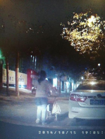 當(dāng)晚7點(diǎn)左右,童先生在市一醫(yī)院門(mén)口停車(chē)等待妻兒,一名推著童車(chē)的婦女的舉動(dòng)引起童先生注意。