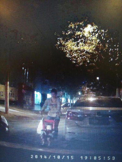 童先生的車(chē)載記錄儀拍下的畫(huà)面,女子停留在車(chē)前頭。