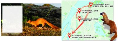 居住在鼓樓區(qū)煤炭港附近的知情居民武先生也是一名動物攝影愛好者,據(jù)他多年的攝影經(jīng)驗(yàn)和追蹤觀察,總結(jié)勾畫出黃鼠狼在南京城北的一張“覓食行蹤圖”,2011年黃鼠狼出沒在下關(guān)多倫路一帶的居民區(qū),那里居住密集,也“養(yǎng)肥”了不少老鼠,它們成了黃鼠狼的美餐,據(jù)他觀察,每只黃鼠狼一夜間可捕食6只老鼠。2012年,多倫路一帶開始動遷,黃鼠狼們轉(zhuǎn)戰(zhàn)方家營,仍以老鼠為主食。之后黃鼠狼又來到幕府山一帶,主要以野兔、昆蟲和蚯蚓為食。今年黃鼠狼把目光瞄準(zhǔn)到揚(yáng)子江大道濱江外灘,那里臨江多水,在傍晚退潮時,小魚小蝦都“跳到了黃鼠狼的口里來”。多年的黃鼠狼拍攝追蹤經(jīng)歷也使得武先生因此混出個“武大狼”的綽號。