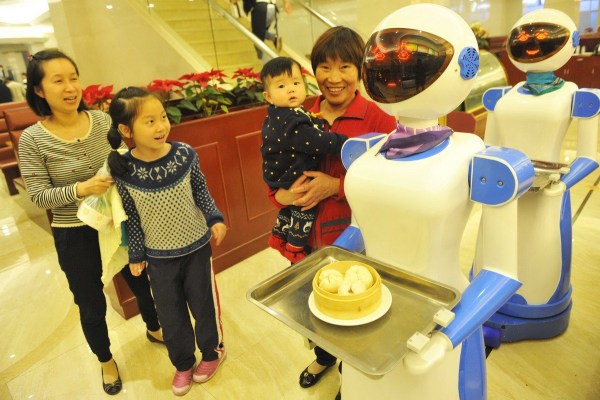 對于餐廳里這兩個服務員,就餐的顧客都倍感新鮮,從機器人手中接過食物后,都會和機器人合影?!袄习宓膭?chuàng)意特別好,給人耳目一新的感覺。我家孩子嚷著叫我也買一個,每天在家里為我們服務。”顧客徐女士說。