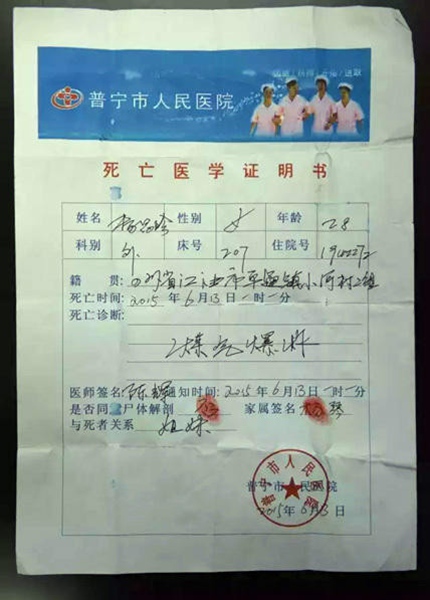 死亡證書是偽造的。