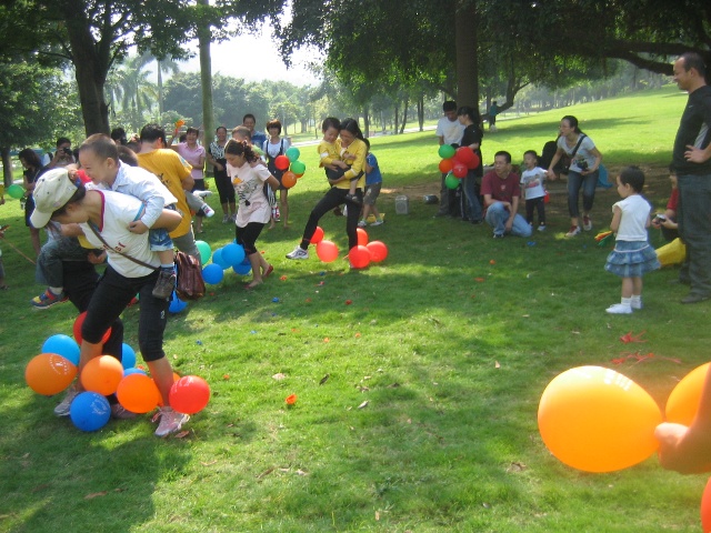 游戲規(guī)則:每個(gè)家庭由一名家長(zhǎng)和一名孩子參加,由工作人員給參與的每個(gè)家庭發(fā)三個(gè)氣球和一根細(xì)繩,請(qǐng)家長(zhǎng)將氣球吹大綁在自己的腳腕,身背孩子。聽到主持人的口令游戲開始,家長(zhǎng)就背著寶寶踩其他家庭的氣球,在互相踩氣球的同時(shí),首先要注意安全,其次要保護(hù)自己的氣球,還要將別的家庭的氣球踩破,氣球被踩爆即被淘汰,比一比誰是冠軍。
