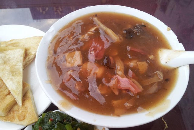 蜿蜒東流的潁河和千載悠悠的沙河在逍遙鎮(zhèn)匯合,這里的胡辣湯流傳至今,口味絕佳,辣中有酸,酸中有辣,辣歸辣,卻不上火,且有益行氣、健胃消食。一碗胡辣湯下肚,那感覺就像鎮(zhèn)名,真叫一個(gè)“逍遙”。如今逍遙鎮(zhèn)以胡辣湯聞名于世,一說起河南的胡辣湯,人們首先想到的便是逍遙鎮(zhèn)胡辣湯。
