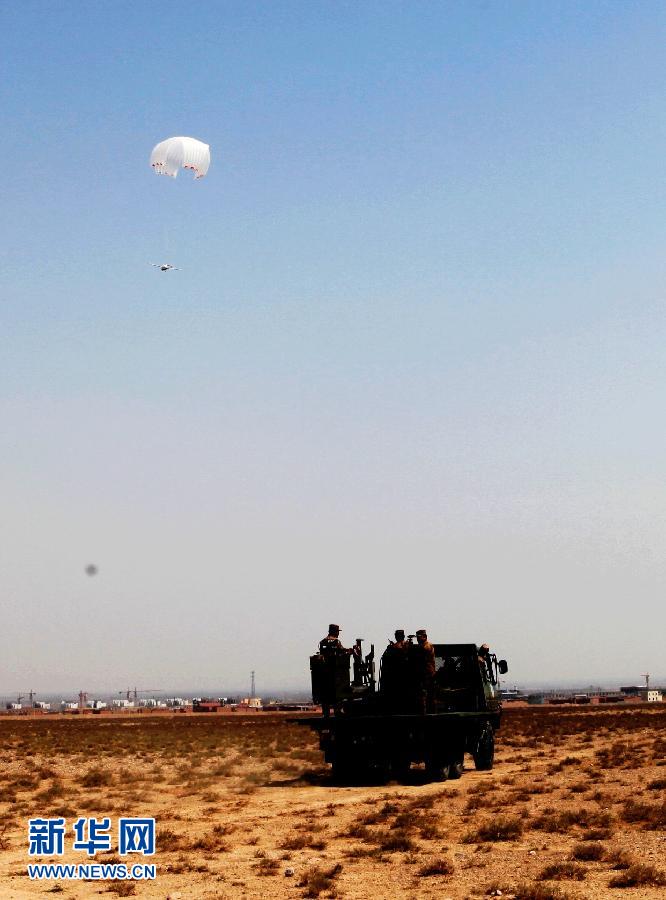 某型測繪無人機返回地面時,自動打開降落傘,空降到指定地域(4月16日攝)。新華社發(fā)(黃寶峰 攝)