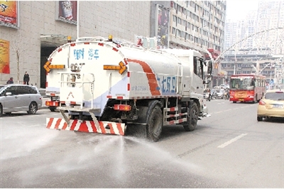 二七區(qū)城管局有關(guān)負責人張晨涓告訴記者,按照道路類別和污染程度安排灑水作業(yè)路線,并按照一車水灑4公里路面的距離和就近區(qū)域劃分了4臺車的灑水路段?!懊刻?時和13時對轄區(qū)建設(shè)東路、興華街、航海路、嵩山南路、政通路等10條重點路段89萬平方米的道路進行兩次灑水降塵作業(yè)。”