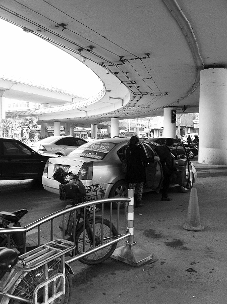 昨天上午10點,在鄭州市大學(xué)路和航海路交叉口東北角公交站牌下,記者向4輛已有乘客的出租車招手示意停下,但沒有一輛停下。