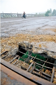 王寨河橋位于S316省道鄭密路18公里700米處,大橋全長約54米,建于上世紀(jì)90年代初,是新密通往省會城市鄭州的必經(jīng)之路,是S316省道鄭密路的咽喉要道。記者在新密市公路局了解到,王寨河大橋于4月28日發(fā)現(xiàn)危情,目前,新密市公安局交警大隊(duì)和新密市公路局24小時(shí)派專人看守。禁止一切車輛通行。關(guān)于王寨河大橋何日修復(fù),新密市公路局辦公室的劉主任稱,還要等專家勘察結(jié)果出來后才能定奪。