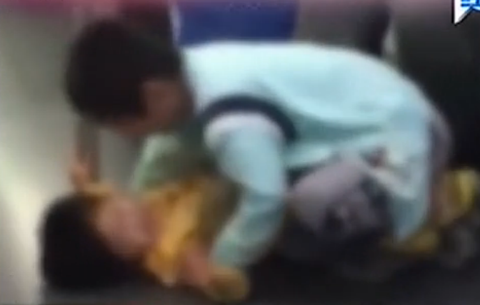 地鐵內(nèi)小男孩按倒小女孩親嘴