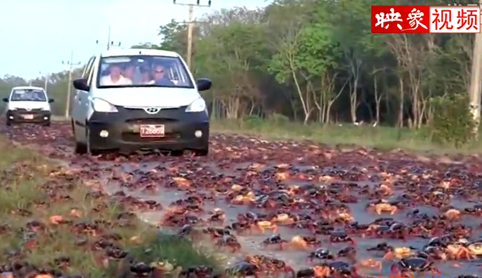 實拍百萬螃蟹大遷徙 汽車軋上咔咔響