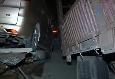 鄭州凌晨又塌 兩輛轎車被困