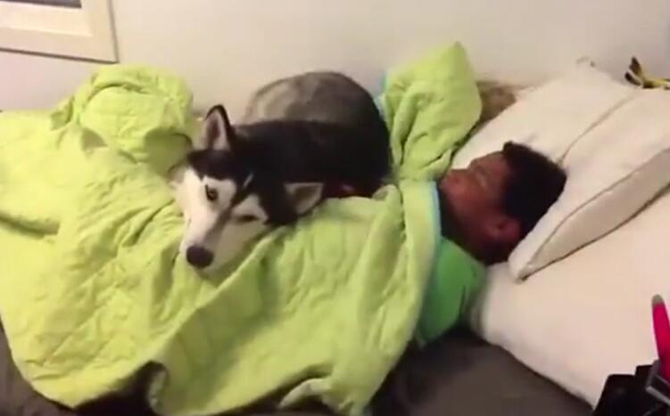 小哥掀被子 二哈這反映很"狼"