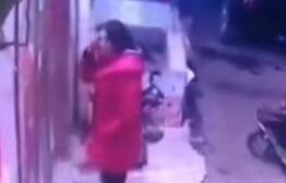 遮擋號(hào)牌出奇招 女子擋著貨車(chē)跑