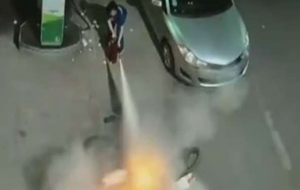 • 加油站內(nèi)摩托車(chē)突起火 20秒化解險(xiǎn)情