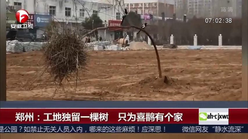 工地獨(dú)留棵樹 只為喜鵲有個(gè)家