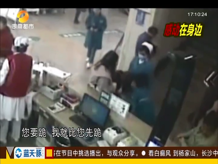 老人問診下跪致謝 護(hù)士跪地托舉