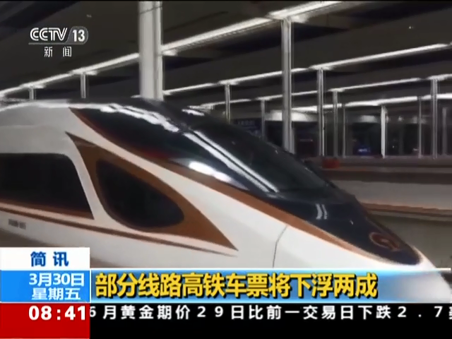 部分線路高鐵車票將下浮兩成