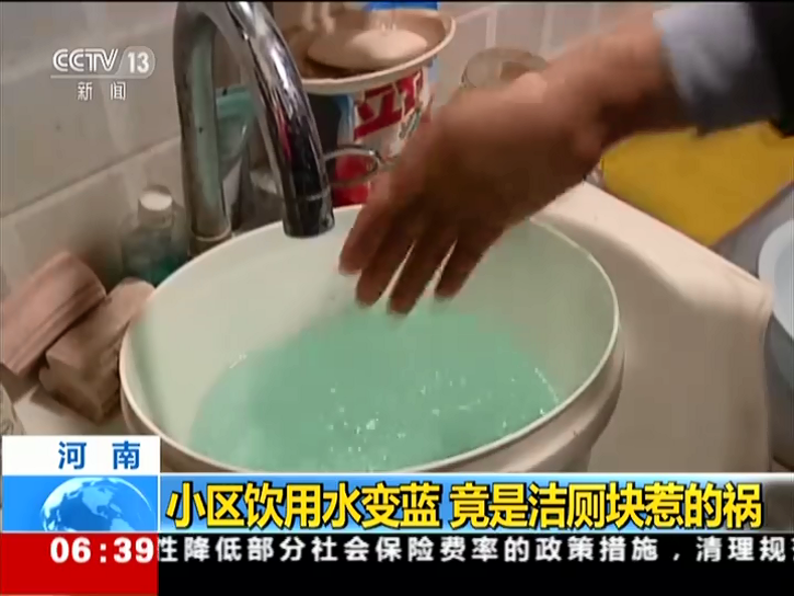 飲用水變藍(lán) 竟是潔廁塊惹的禍
