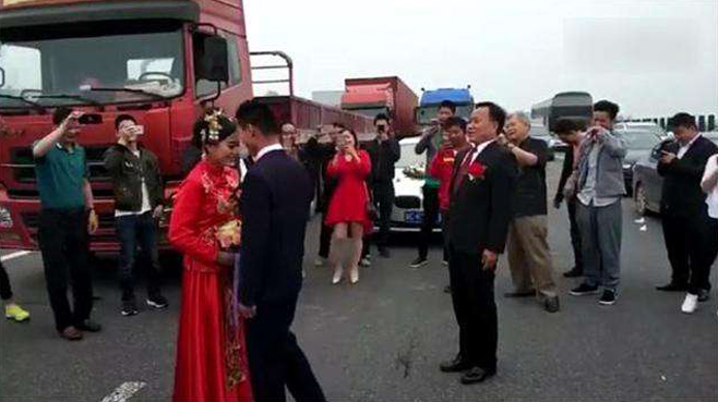 高速上結(jié)婚誰見過?新郎接親遇堵車 高速現(xiàn)場拜天地