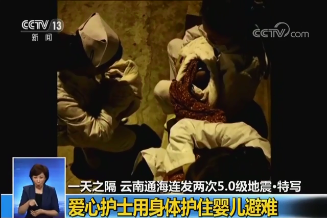 • 一天之隔 云南通海連發(fā)兩次5.0級地震·特寫 愛心護士用身體護住嬰兒避難