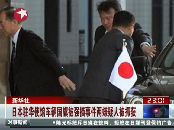 8月27日在北京東北四環(huán)路上攔停日本駐華大使座車(chē)強(qiáng)摘日本國(guó)旗的兩名嫌疑人被行政拘留。當(dāng)時(shí)正駕車(chē)經(jīng)過(guò)此處的一輛車(chē),因阻礙使館車(chē)輛正常行駛,被公安機(jī)關(guān)予以警告。