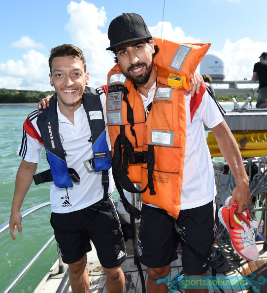 北京時(shí)間6月11日,世界杯臨近,德國隊(duì)近日與瑞士冒險(xiǎn)家霍恩一起揚(yáng)帆起航,出海游玩,讓隊(duì)員們?cè)诖筚惽俺浞址潘伞6螨R爾和拉姆等人在船上玩的不亦樂乎。