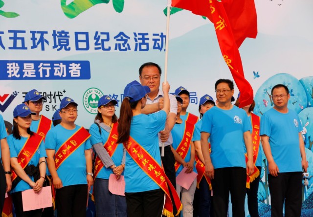 李保興副市長為堅(jiān)守在環(huán)保路上的洛陽市生態(tài)環(huán)境志愿服務(wù)隊(duì)的志愿者授旗↑↑
