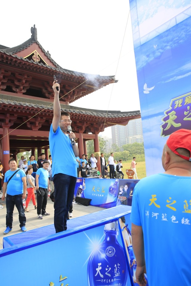 洋河股份開封分公司總經(jīng)理唐儀龍到場致辭,號召開封的朋友們用跑步的方式,傳遞快樂,關(guān)注環(huán)保,共同守護天之藍。河南廣播電視臺都市頻道主持人林泉和杜瑞雪主持本次活動。