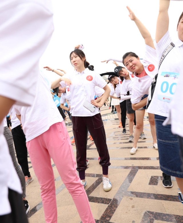 熱身操時也不忘耍寶,歡樂與跑步缺一不可