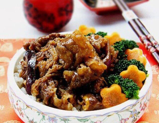 3.等鍋內(nèi)的照燒醬燒開后,放入肥牛片;