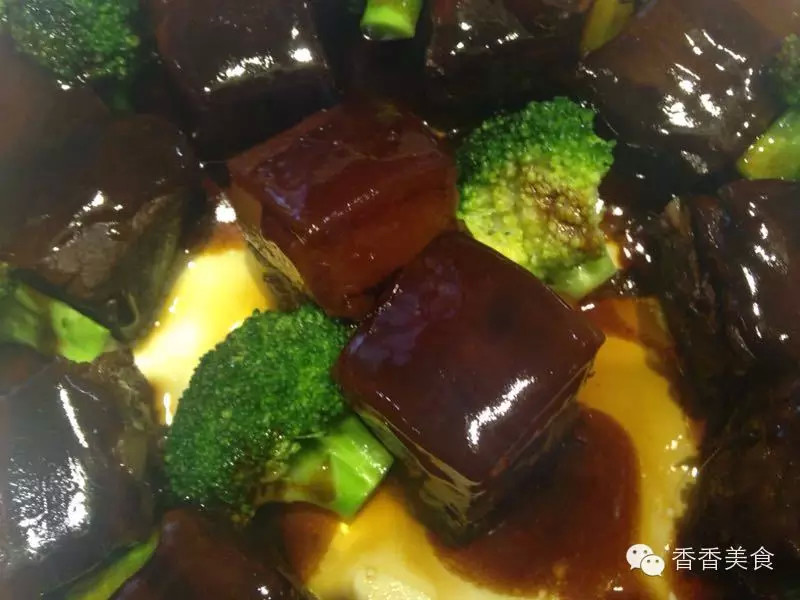 3、鍋內放油,加入白糖炒糖色,然后加入水,冰糖,生抽,老抽,將炒好的料汁倒在肉上,上火煨制30分鐘即可。