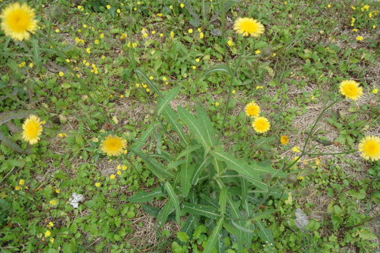 原生形態(tài):抱莖苦荬菜多年生草本,高可達(dá)1米許。根粗壯而垂直。莖直立。根生葉排成蓮座狀,葉片長(zhǎng)圓狀倒披針形,倒向羽裂狀或羽狀缺刻,先端短尖或鈍圓,基部慚狹成柄,花期通常不萎落;莖生葉基部抱莖。頭狀花序排成傘房狀;總苞圓摘狀,外層苞片極短小,內(nèi)層苞片線狀披針形;花黃色,全部為舌狀花,先端5齒裂;花柱細(xì)長(zhǎng),柱頭2裂,冠毛白色,一層。瘦果紡錘形,稍扁,果喙長(zhǎng)約為瘦果的1/4,通常與瘦果不同色。花期春季。生于山腳、路邊、疏林內(nèi)、河邊。