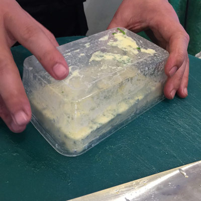 一、雞蛋打散,放入可加熱容器中。薺菜切成小末。