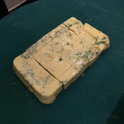 五、改刀。把豆腐切成三厘米寬的塊兒。