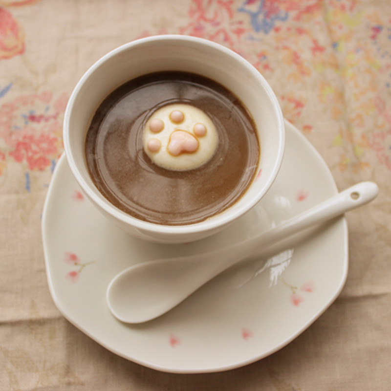 ★推薦理由:光是看著小肉球,放在熱乎乎咖啡或者巧克力里,一點點慢慢融化,簡直整顆心都要化了。這款棉花糖還有可供燒烤的貓腕型棉花糖,烤過的棉花糖和餅干一起超美味。