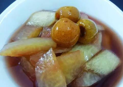 紅酒50克,白糖30克,西瓜皮250克,山楂罐頭適量。