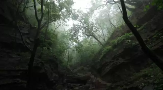 看到這棵樹了沒有,據(jù)說這個(gè)葉子有個(gè)奇特的味道,是一股橘子味,在這山上還有很多珍貴野生的樹種,漫山遍野一股清香襲來,再往前走就可以看到天井了,天井四面峭壁,犬牙交錯(cuò)高深莫測(cè)。