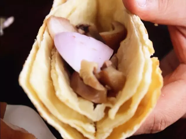 用手一掰放入幾片切好的肉,懂行的吃貨還要再放片洋蔥,解了鹵肉的油膩也添了清香,一口下去滿滿都是脆軟香鮮,炎熱的夏天吃一個很是開胃、