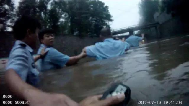 7月16日晚7點,新密市突然下起了瓢潑大雨。7點30分,正在動物園附近執(zhí)行任務(wù)的新密市公安局西大街派出所民警呂鵬輝和輔警張靖、韓耀鵬、張文龍、張永康等接110指令:于家崗鐵路橋處有人被困在水中,請馬上前去解救。