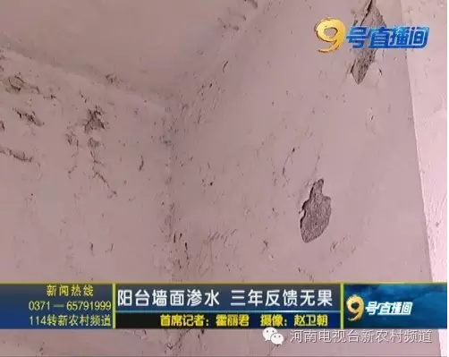 現場可以看到,靠窗的墻面臨近屋頂和地板的地方,都有大大小小的水痕,由于浸水時間較長,這些墻皮都已經分層、裂開,輕輕一碰,就能掉落。而這樣的情況,據楊先生介紹,在2013年就已經出現,當時,他們發(fā)現墻壁大面積滲水之后也給物業(yè)進行了反饋,結果,一直沒有得到修繕。