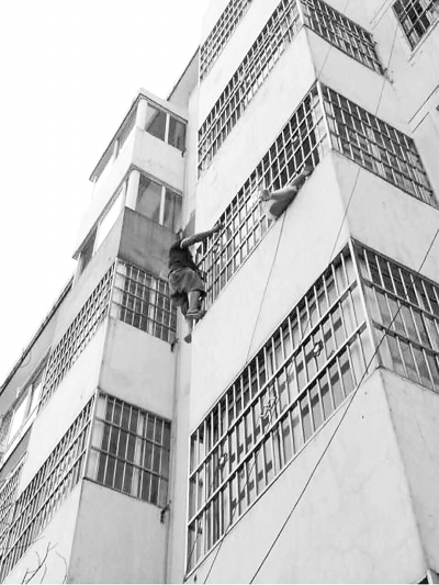 陳愛峰試著爬到防盜窗上營救女童 網(wǎng)友供圖
