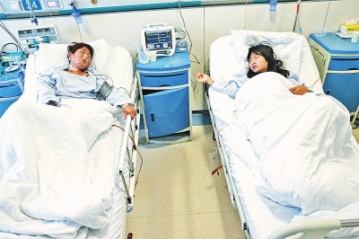昨天下午4點多,當記者在鄭大一附院肝移植病區(qū)見到張文亞和李愛云時,兩人正躺在床上輸液。
