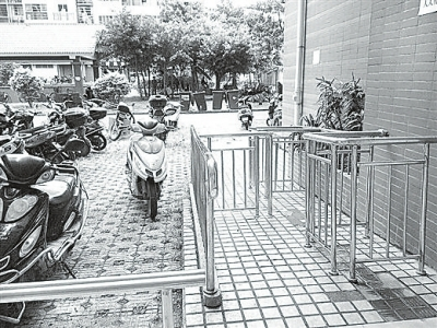 小區(qū)物業(yè)放大招防電動車上樓 電梯內(nèi)安裝座椅、鋼管架