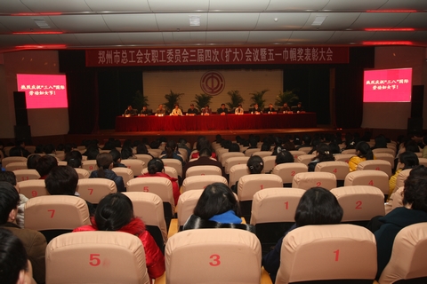 3月6日,在“三八”國際勞動?jì)D女節(jié)即將到來之際,鄭州市總工會召開全市五一巾幗獎表彰大會,市人大副主任、市總工會主席李元法,省總工會女職工部副部長張莉莉,市婦聯(lián)常務(wù)副主席于素云,市總領(lǐng)導(dǎo)班子全體成員以及來市總工會第三屆女職工委員會委員、縣(市)區(qū)、直屬工會分管女職工工作的負(fù)責(zé)同志、女職工部長或女職工工作負(fù)責(zé)人,基層工會女職工干部代表、受表彰的先進(jìn)集體、先進(jìn)個人代表共計(jì)400多人參加了大會。大會由市總工會常務(wù)副主席陳觀壤主持,分別由市總領(lǐng)導(dǎo)侯振家、李建霞、林增志宣讀鄭州市總工會第三屆女職工委員會增、替補(bǔ)委員的決定,授予女職工素質(zhì)教育培訓(xùn)基地的決定,五一巾幗獎表彰決定。市總工會女職工委員會主任靳榮欣做工作報(bào)告。