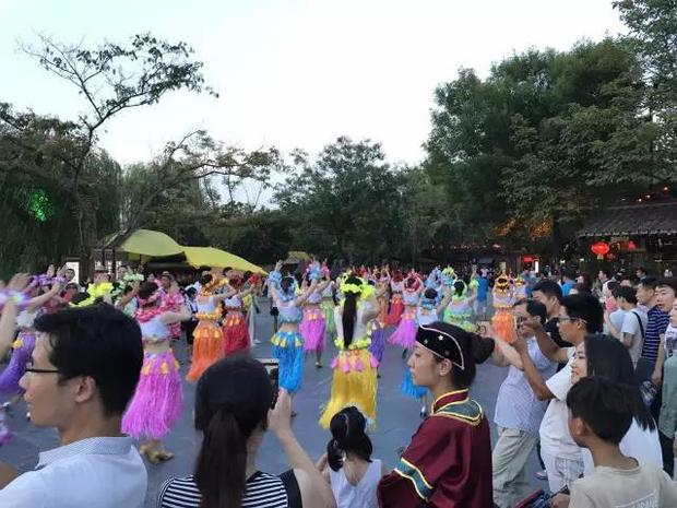 亮點之清涼快閃:舞蹈演員和清園紅人組成的清涼快閃團隊是夜游里的一大亮點,異域美女和古裝大佬們的激情碰撞,挑起了大家的興奮神經,讓我們一起歡樂一起嗨……
